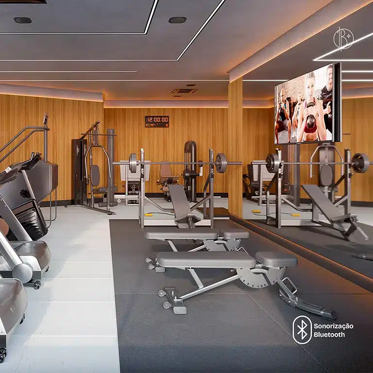 Aproveite uma academia inteligente, com aparelhos modernos para otimizar seus treinos.