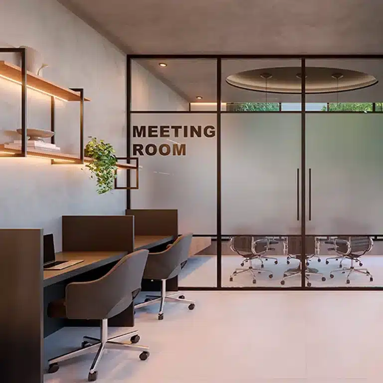 Um ambiente de trabalho moderno e funcional para profissionais inteligentes. trabalhe em um espaço confortável e tenha uma sala de reunião equipada, sem sair de casa.