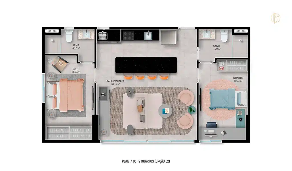 Os apartamentos de 1 ou 2 quartos oferecem a versatilidade que você precisa para criar um ambiente prático de trabalho. ficar online só depende de você.